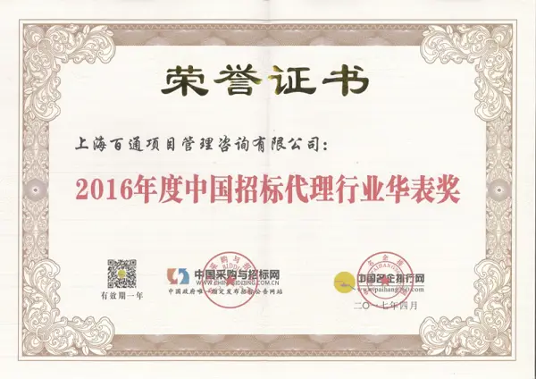 近日捷報頻傳,因我司在行業(yè)專業(yè)領域內(nèi)的深耕細作、精益求精,近期先后榮獲中國采購與招標網(wǎng)、中國名企排行網(wǎng)聯(lián)合評比表彰的2016年度“中國招標代理行業(yè)華表獎”、“中國最具競爭力招標代理機構百強”稱號;浦東新區(qū)重大工程建設指揮部授予的2016年度“上海市浦東新區(qū)重點工程實事立功競賽優(yōu)秀公司”稱號;《檢察風云》雜志社評選表彰的“弘揚廉政文化宣傳法治文明先進單位”稱號。