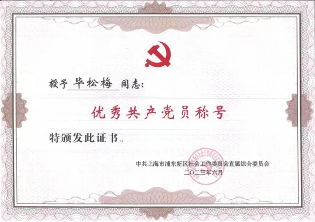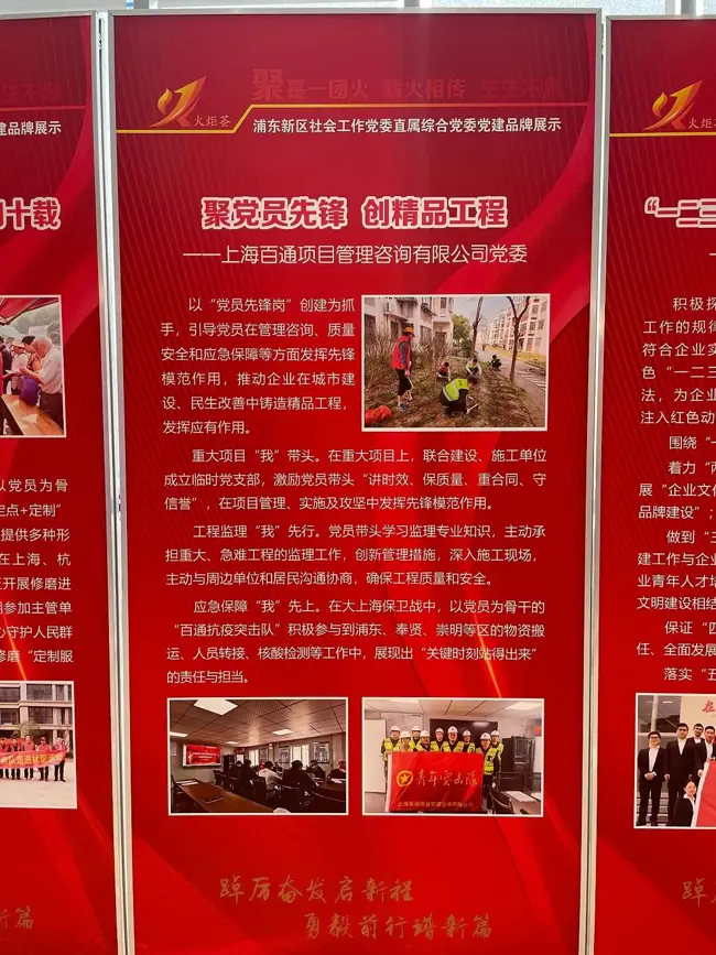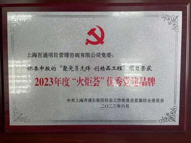 6月29日,在浦東新區社會工作黨委直屬綜合黨委慶祝建黨102周年暨表彰活動中,公司黨委申報的“聚黨員先鋒 創精品工程”項目榮獲2023年度“火炬薈”優秀黨建品牌。公司黨委委員、監理板塊副總經理、高級工程師朱樹波同志、公司招標代理板塊副總工程師、咨詢三部經理、高級工程師畢松梅同志榮獲“優秀共產黨員”稱號。