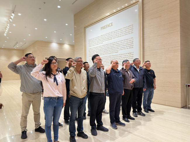 活動當日,參與人員準時在中共一大紀念會址安檢門口集合,有序完成拍照留念后,經安檢統一入場。參觀伊始,在黨支部書記朱樹波的帶領下,全體黨員面向鮮紅的黨旗,整齊列隊,高舉右拳,重溫入黨誓詞:"我志愿加入中國共產黨,擁護黨的綱領,遵守黨的章程..."鏗鏘有力的誓言在會址內回蕩,彰顯著新時代共產黨員的堅定信仰。